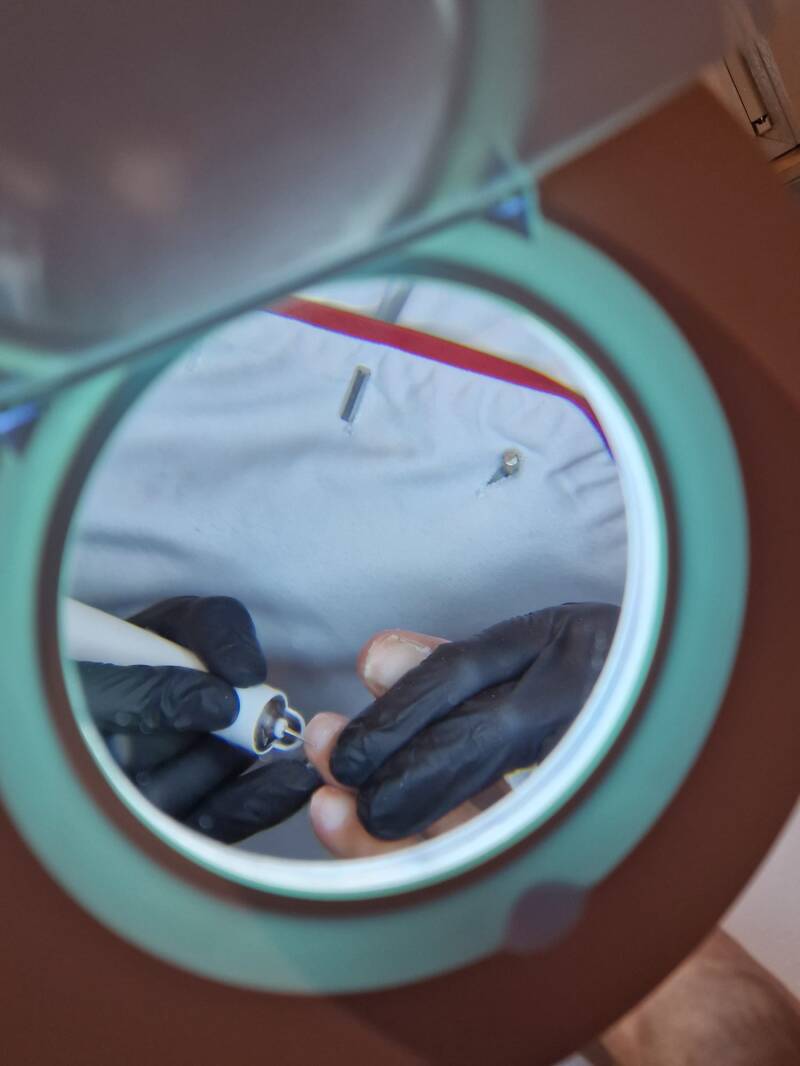 Na de screening en het desinfecteren van de voeten worden de nagels geknipt, gereinigd en in vorm gebracht.
